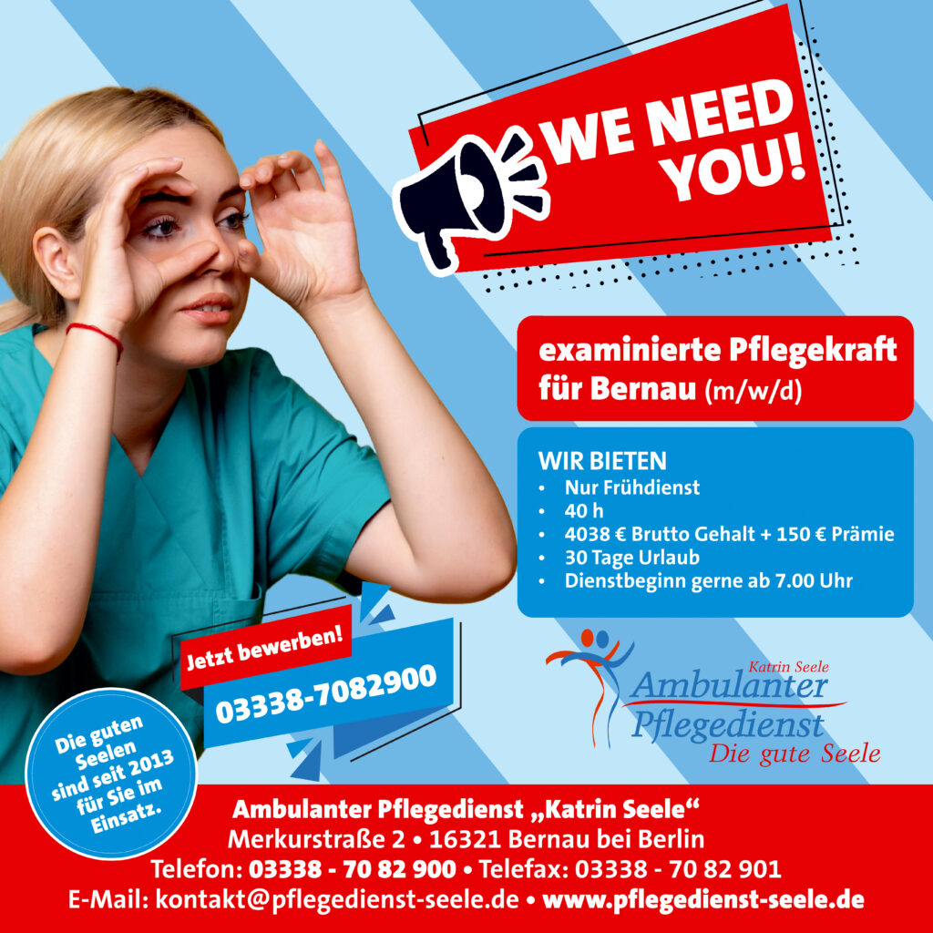 Der Ambulante Pflegedienst „Katrin Seele“ wurde 2013 gegründet. Zuvor war die Firmengründerin mehr als 15 Jahre im ambulanten und stationären Bereichen und Abteilungen als Pflegekraft tätig.